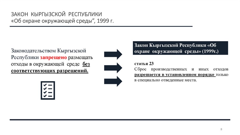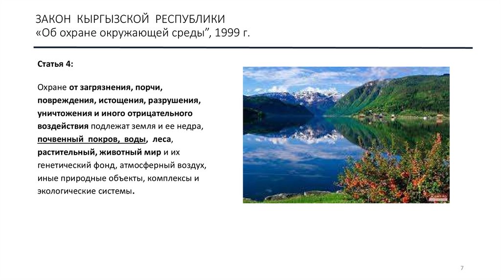 ЗАКОН КЫРГЫЗСКОЙ РЕСПУБЛИКИ«Об охране окружающей среды”, 1999 г.