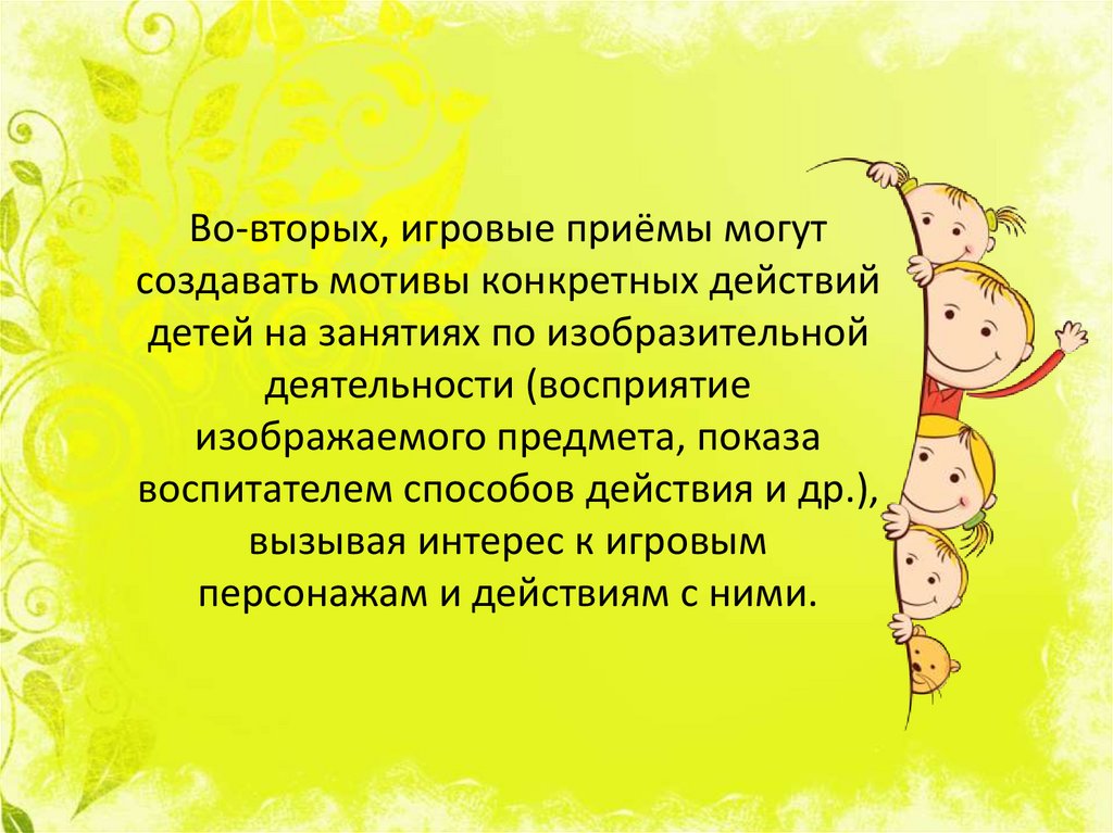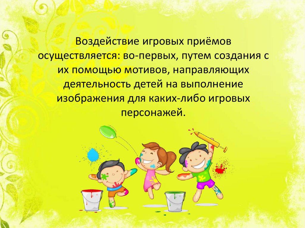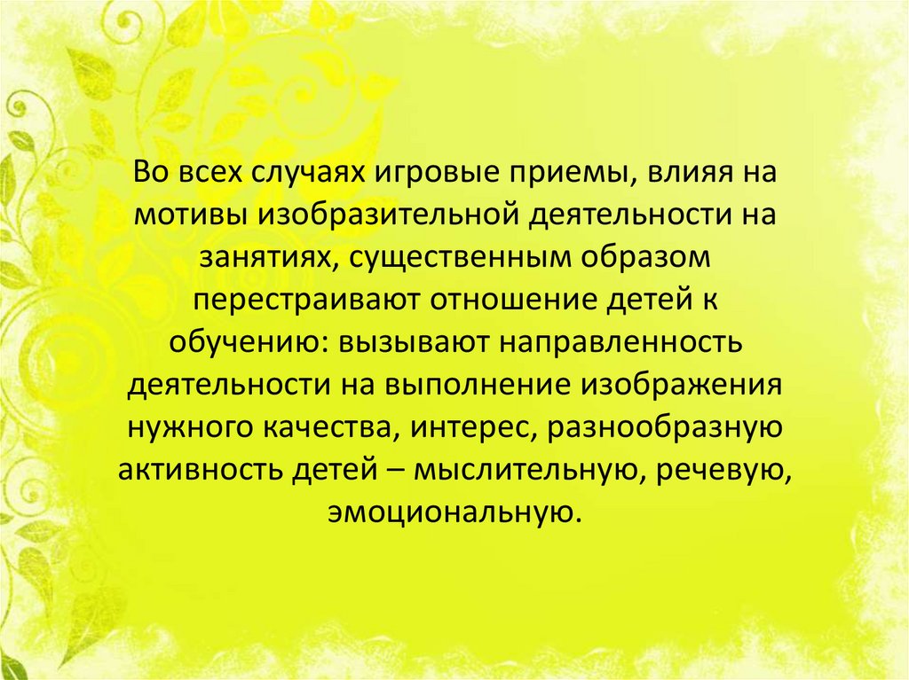 Во всех случаях игровые приемы, влияя намотивы изобразительной деятельности на