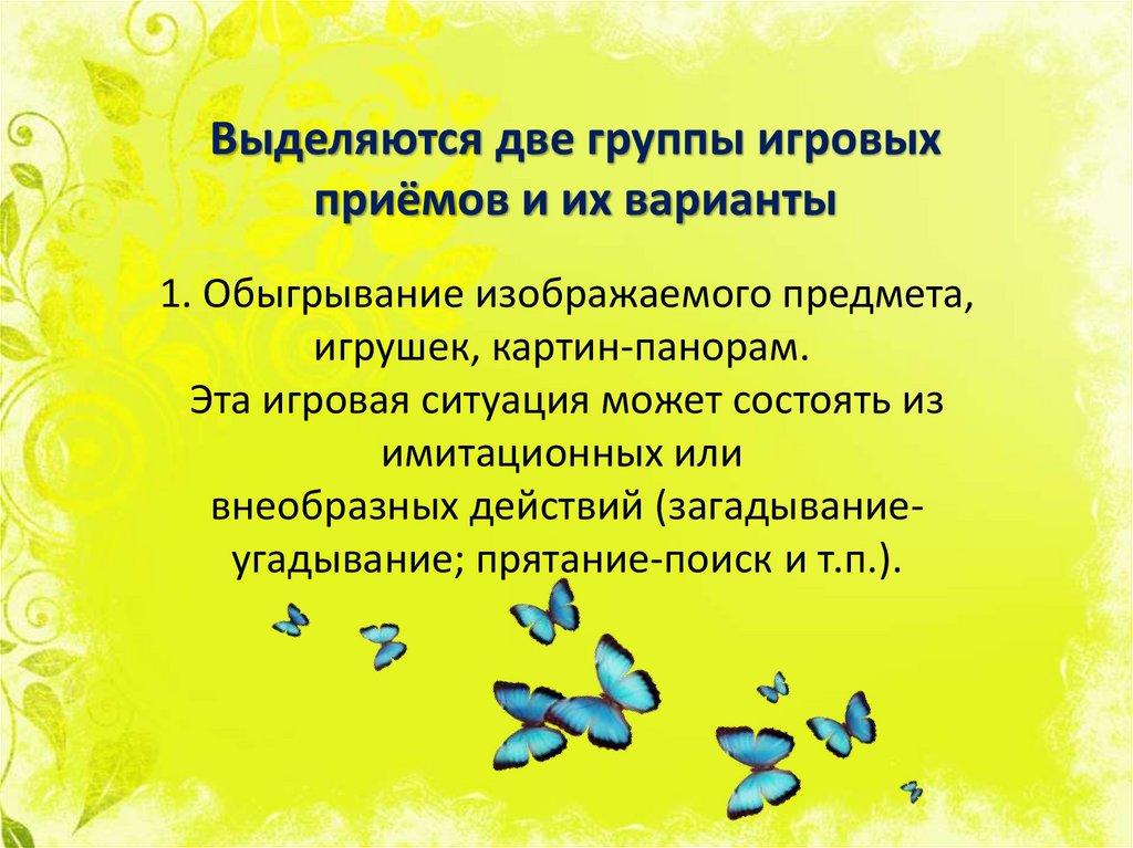 Выделяются две группы игровыхприёмов и их варианты