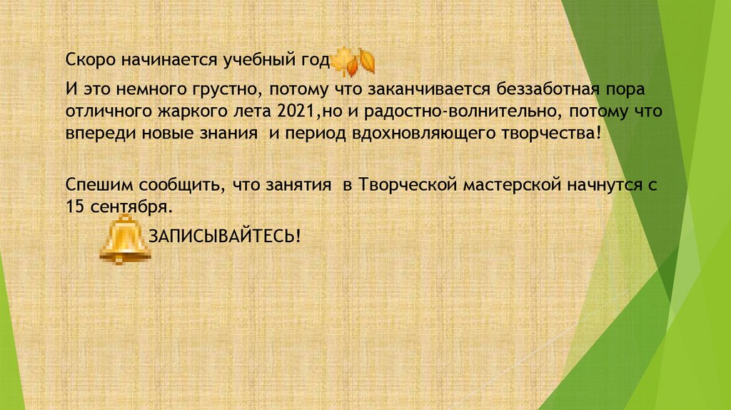 Спешим сообщить, что занятия в Творческой мастерской начнутся с