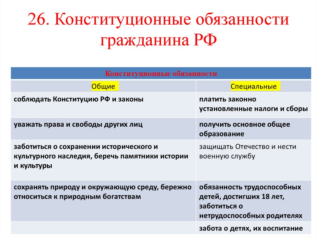 26. Конституционные обязанностигражданина РФ