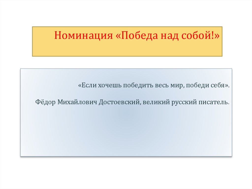 Номинация «Победа над собой!»«Если хочешь победить весь мир, победи себя».