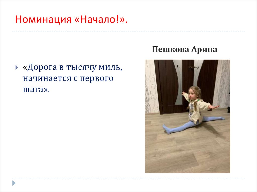Номинация «Начало!».Пешкова Арина