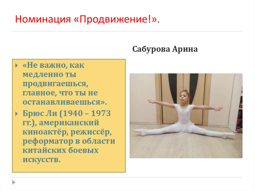 Номинация «Продвижение!».Сабурова Арина