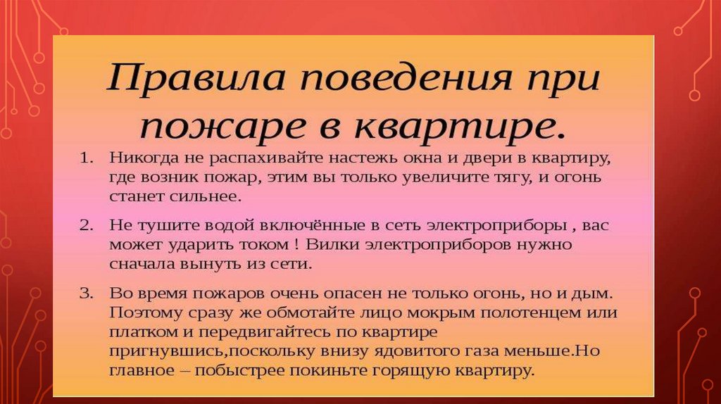 ПОВЕДЕНИЯ ПРИ ПОЖАРЕ В ДОМЕ