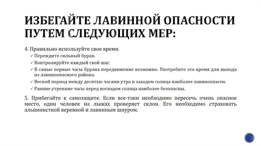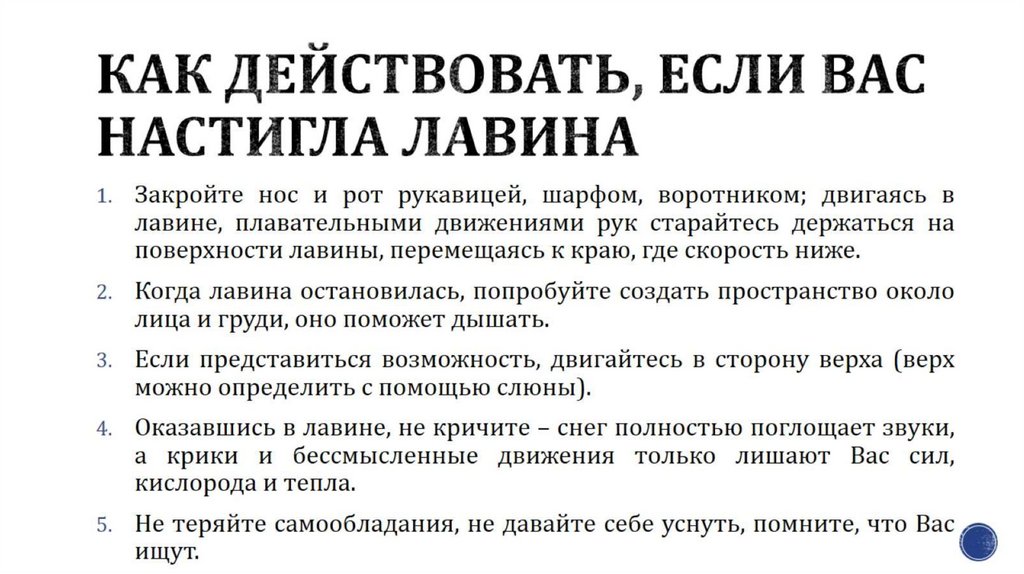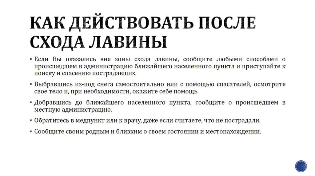 Правила безопасного поведения при угрозе и сходе снежных лавин