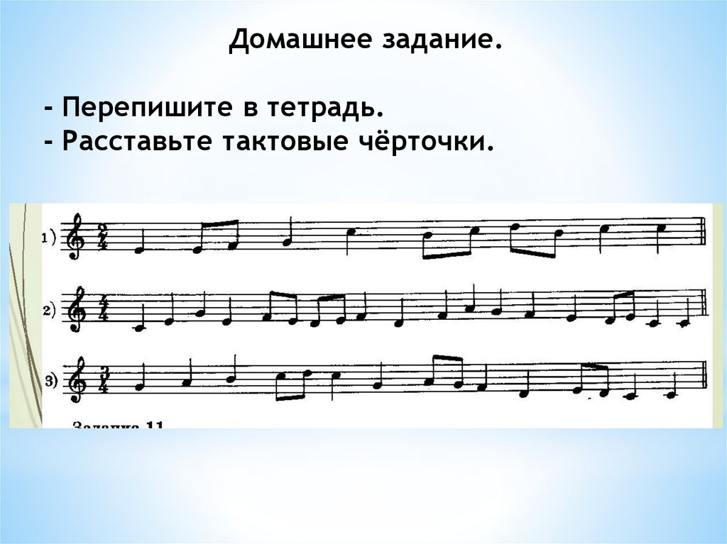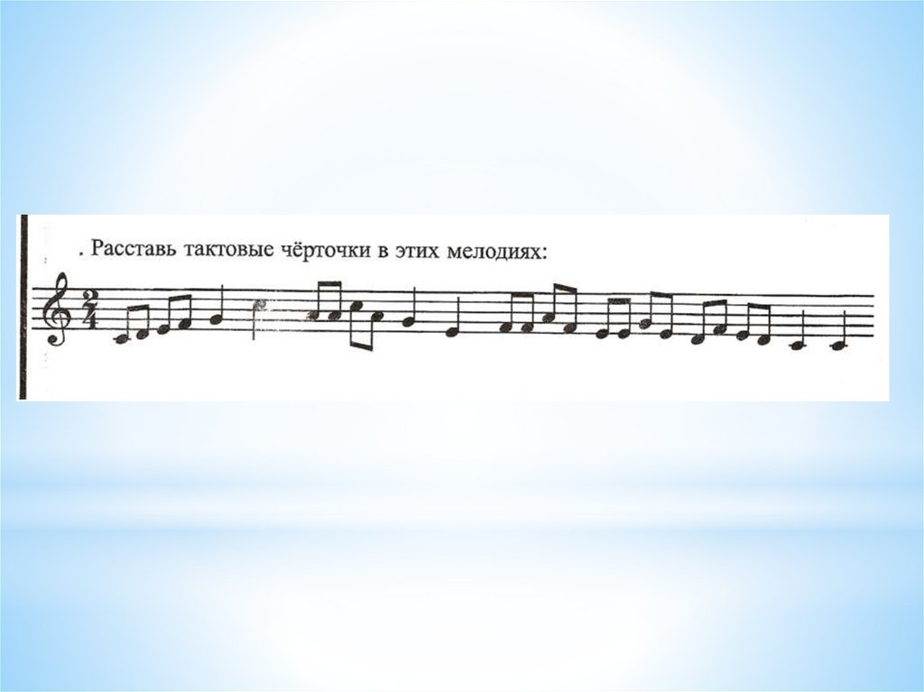 - Расставьте тактовые чёрточки.