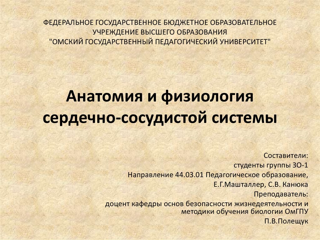 Анатомия и физиология сердечно-сосудистой системы