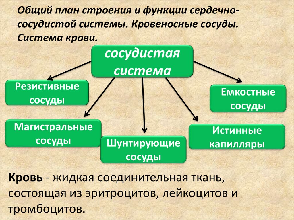 Общий план строения и функции сердечнососудистой системы. Кровеносные сосуды.Система крови.