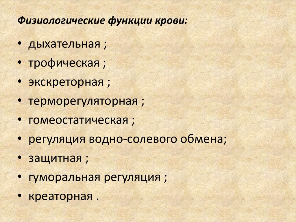 Физиологические функции крови:дыхательная ;