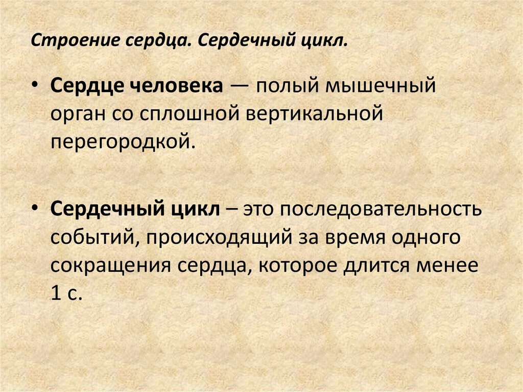 Строение сердца. Сердечный цикл.• Сердце человека — полый мышечный
