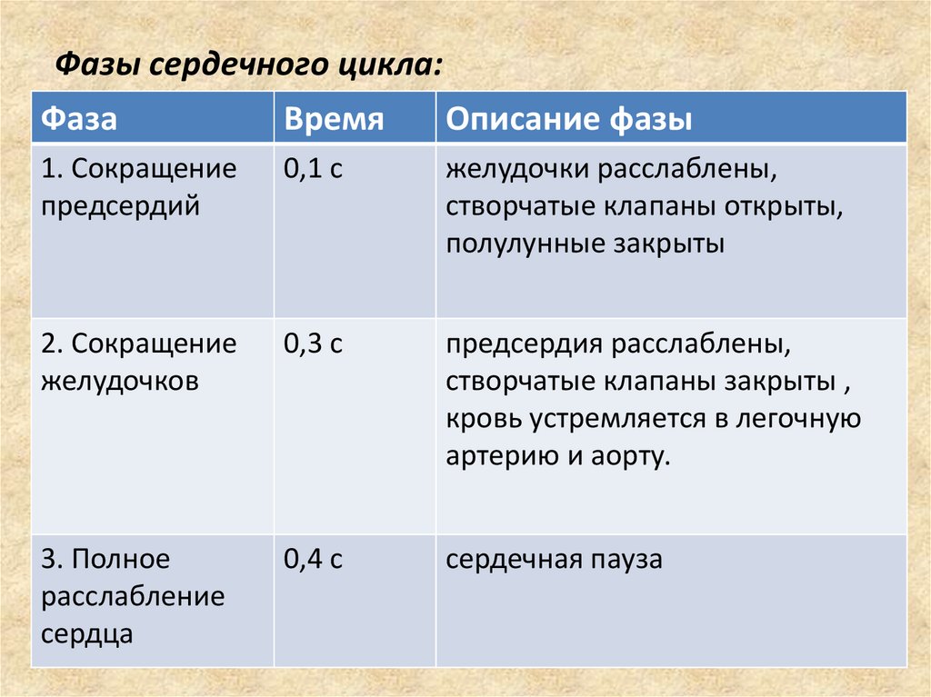 Фазы сердечного цикла:Фаза