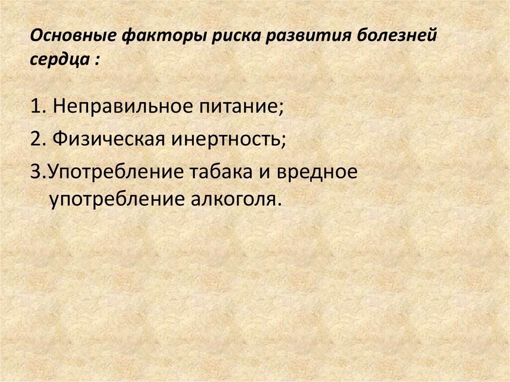 Основные факторы риска развития болезнейсердца :