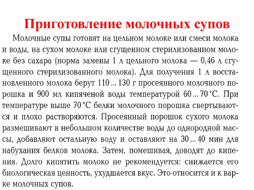 Приготовление молочных супов