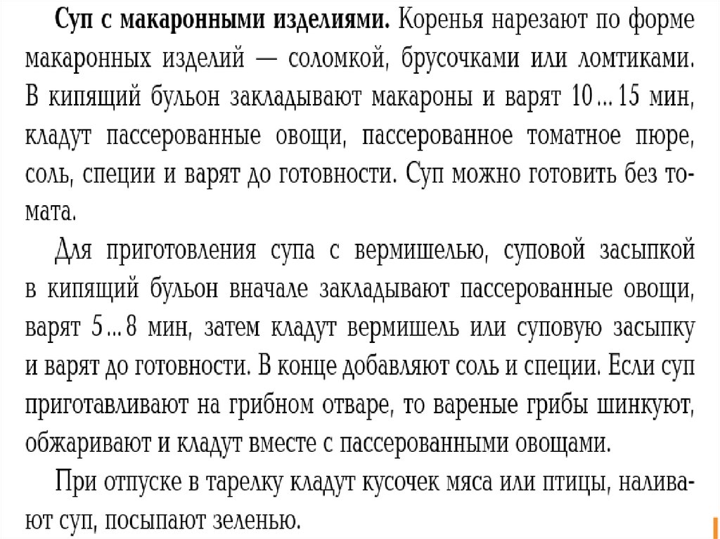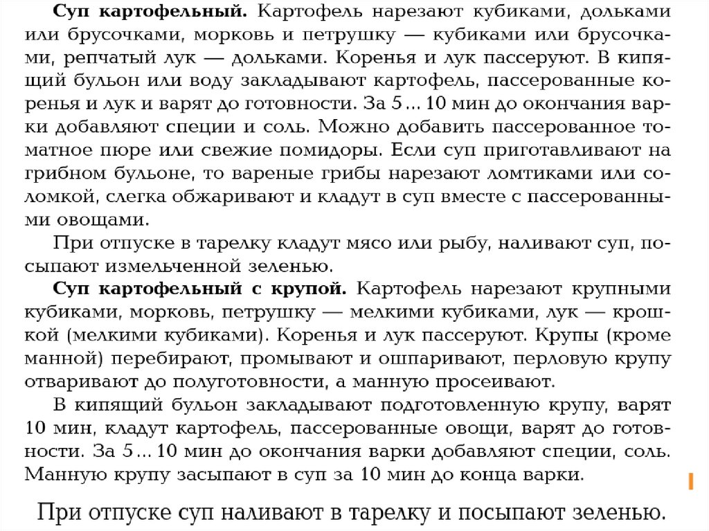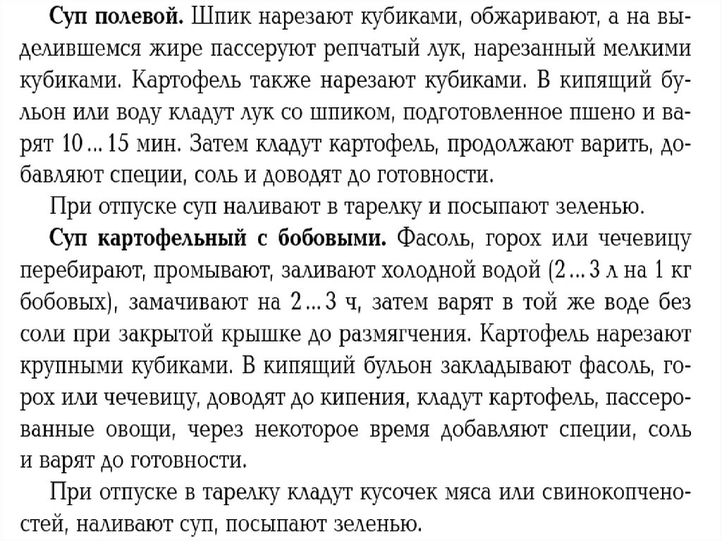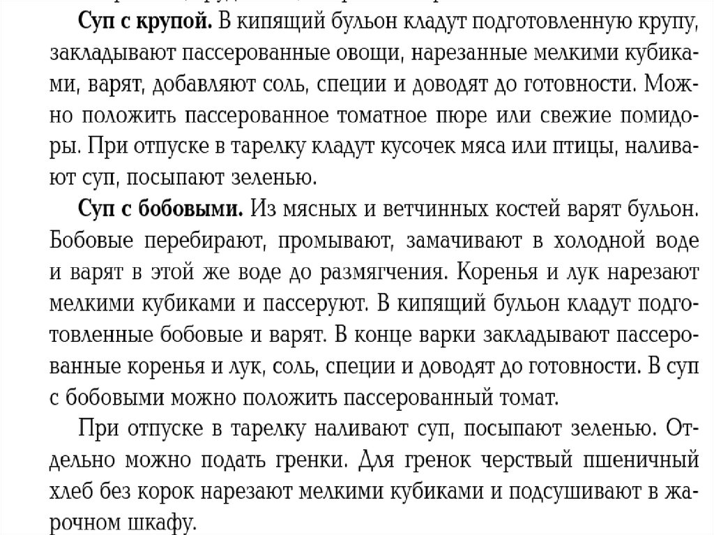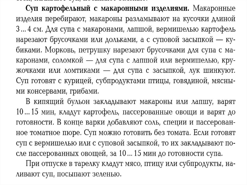 Супы картофельные, с крупами, макаронными изделиями и бобовыми. Приготовление заправочных супов