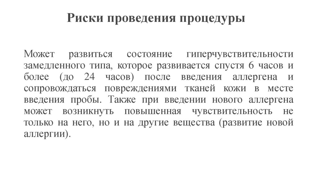 Риски проведения процедурыМожет развиться состояние гиперчувствительности