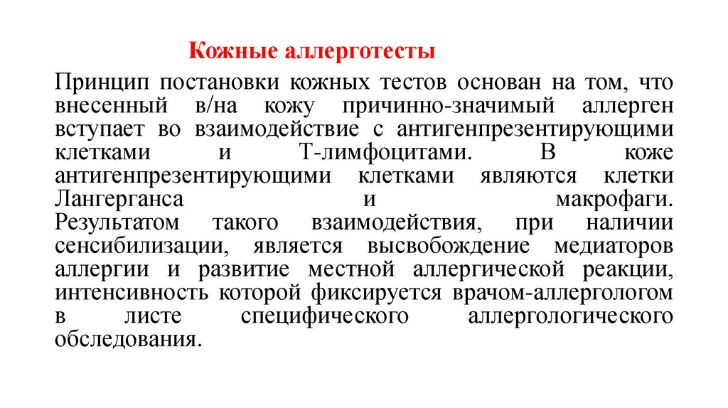 Кожные аллерготестыПринцип постановки кожных тестов основан на том, что