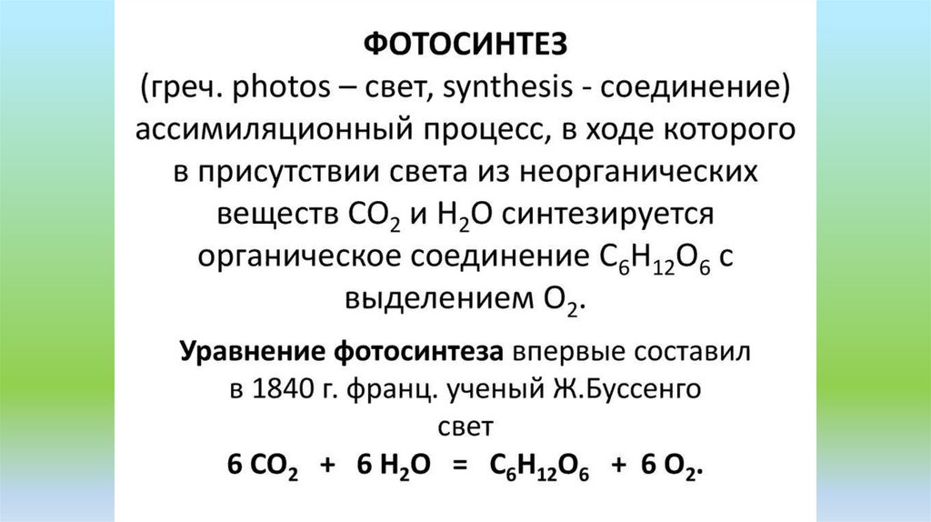 Фотосинтез какассимиляционный процесс.