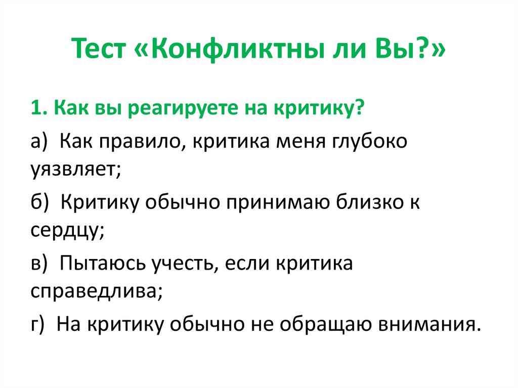 Тест «Конфликтны ли Вы?»1. Как вы реагируете на критику?