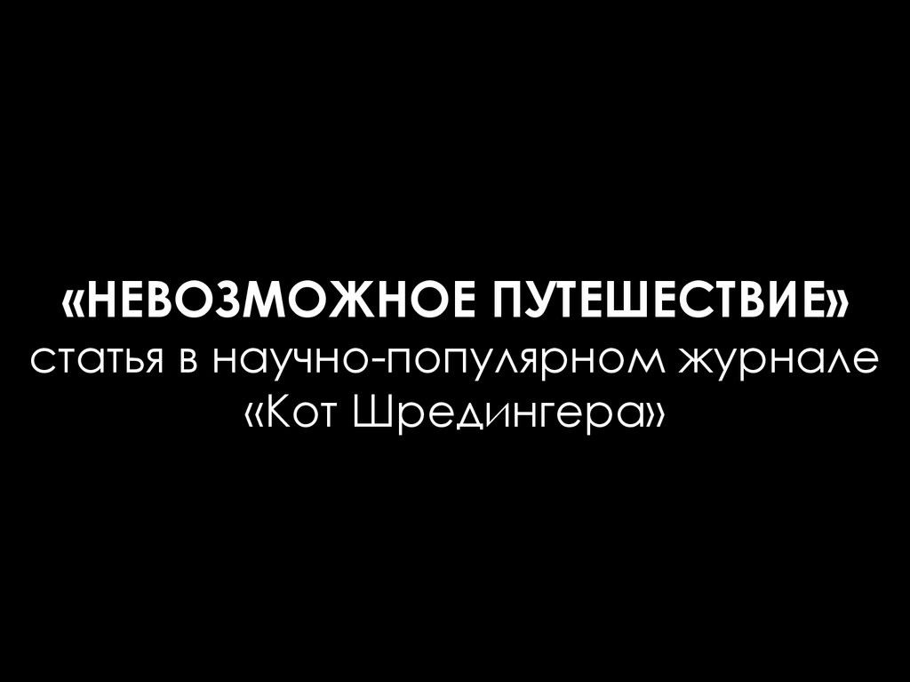 «НЕВОЗМОЖНОЕ ПУТЕШЕСТВИЕ»статья в научно-популярном журнале