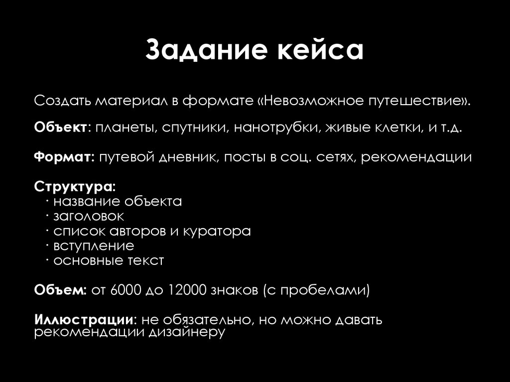 Задание кейсаСоздать материал в формате «Невозможное путешествие».