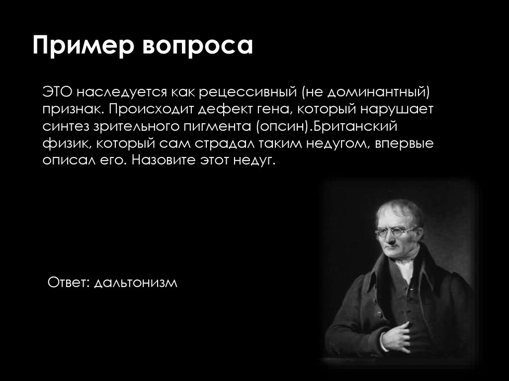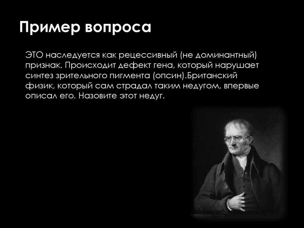 Пример вопросаЭТО наследуется как рецессивный (не доминантный)
