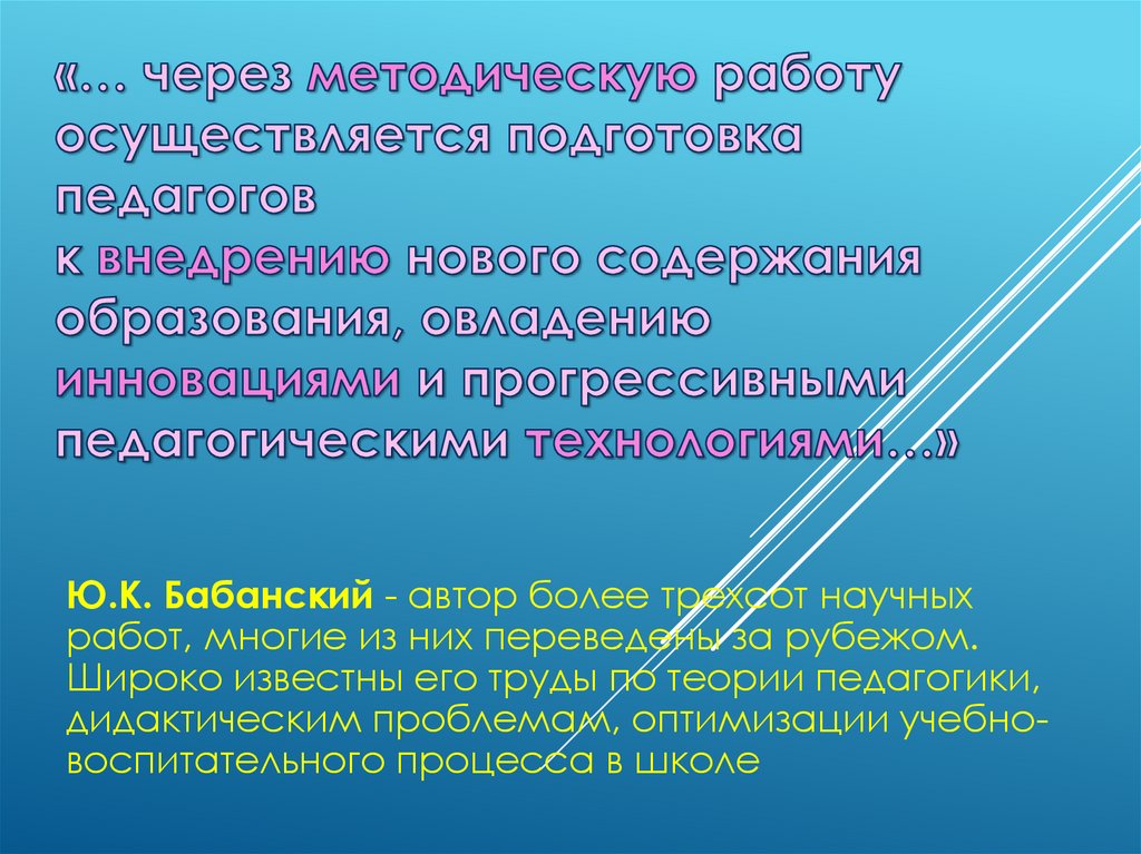 Ю.К. Бабанский - автор более трехсот научныхработ, многие из них переведены за рубежом.