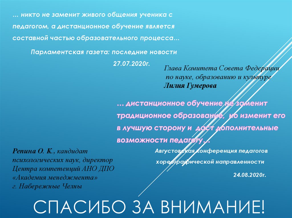 … никто не заменит живого общения ученика спедагогом, а дистанционное обучение является