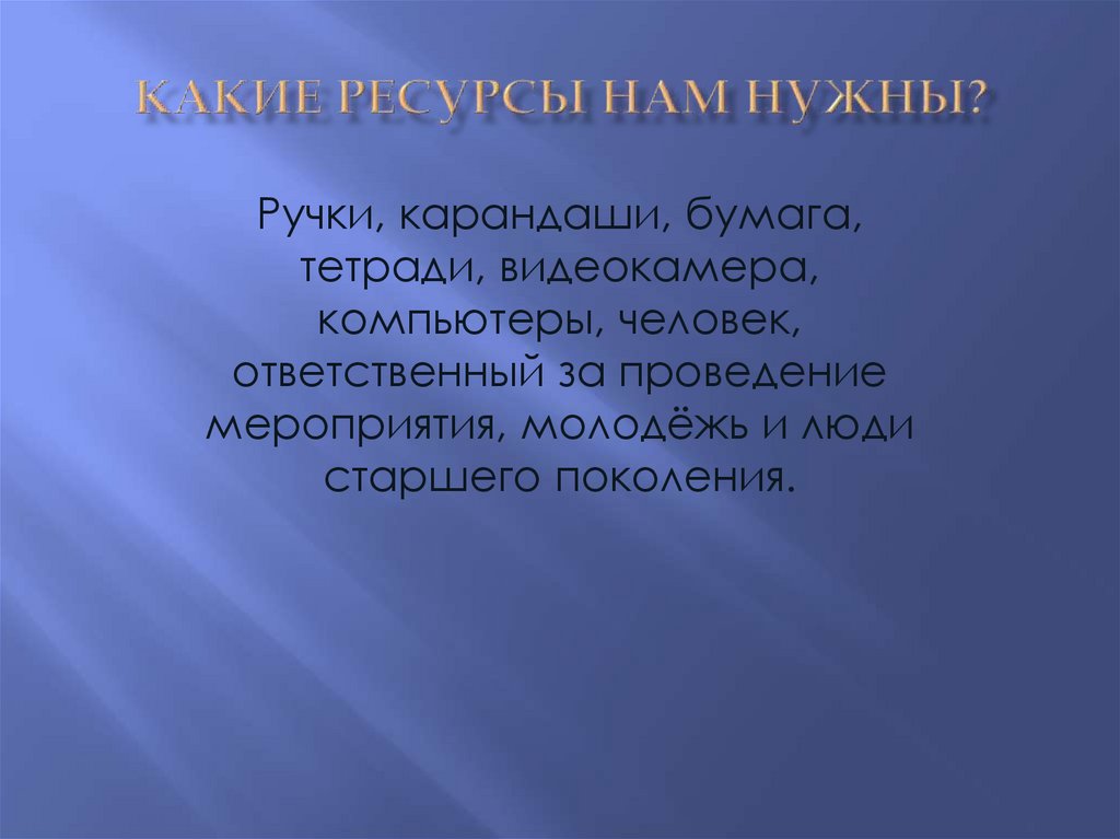 Это проект, в котором мы соберёмболее молодое поколение и старшее,
