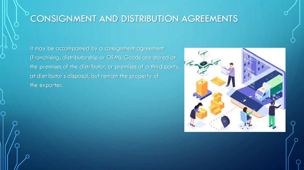 WHAT ABOUT RISKS?This agreement decreases the exporter's risk because he remains the owner of the commodities in
