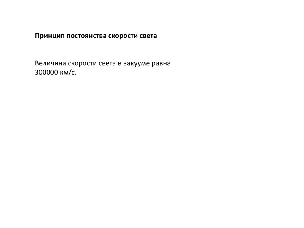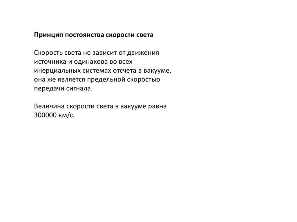 Принцип постоянства скорости светаСкорость света не зависит от движения