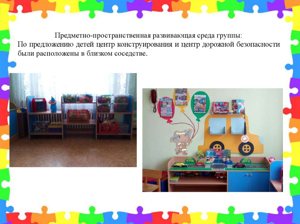 Предметно-пространственная развивающая среда группы:По предложению детей центр конструирования и центр дорожной безопасности
