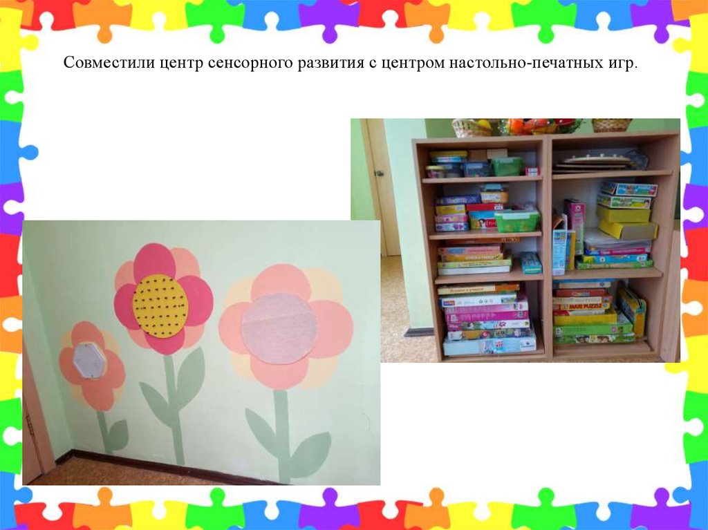 Совместили центр сенсорного развития с центром настольно-печатных игр.6.
