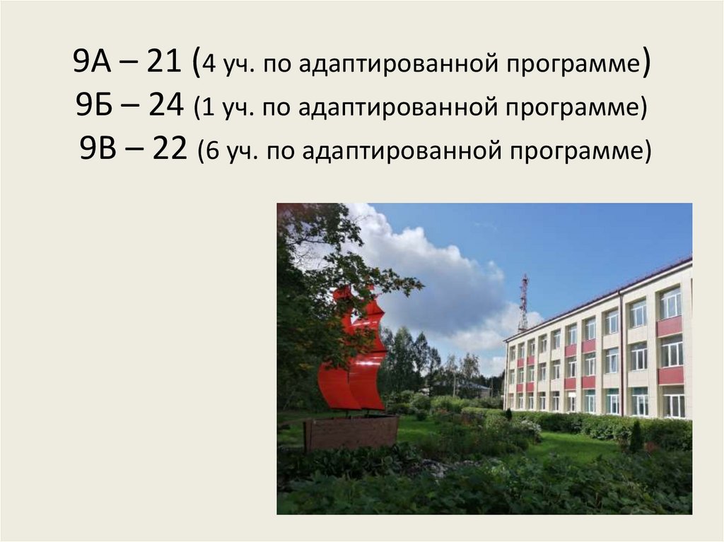 9А – 21 (4 уч. по адаптированной программе)9Б – 24 (1 уч. по адаптированной программе)