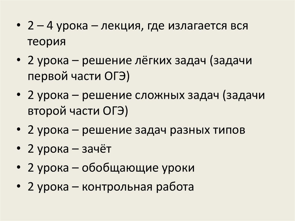 • 2 урока – решение задач разных типов