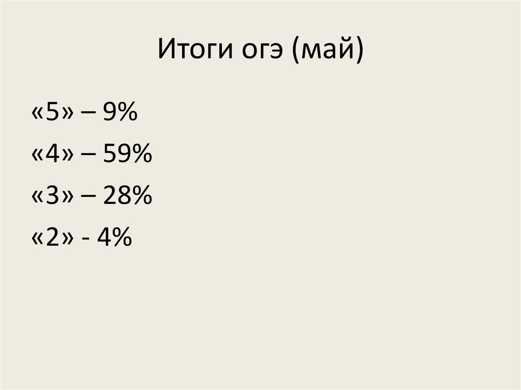 Итоги огэ (май)«5» – 9%
