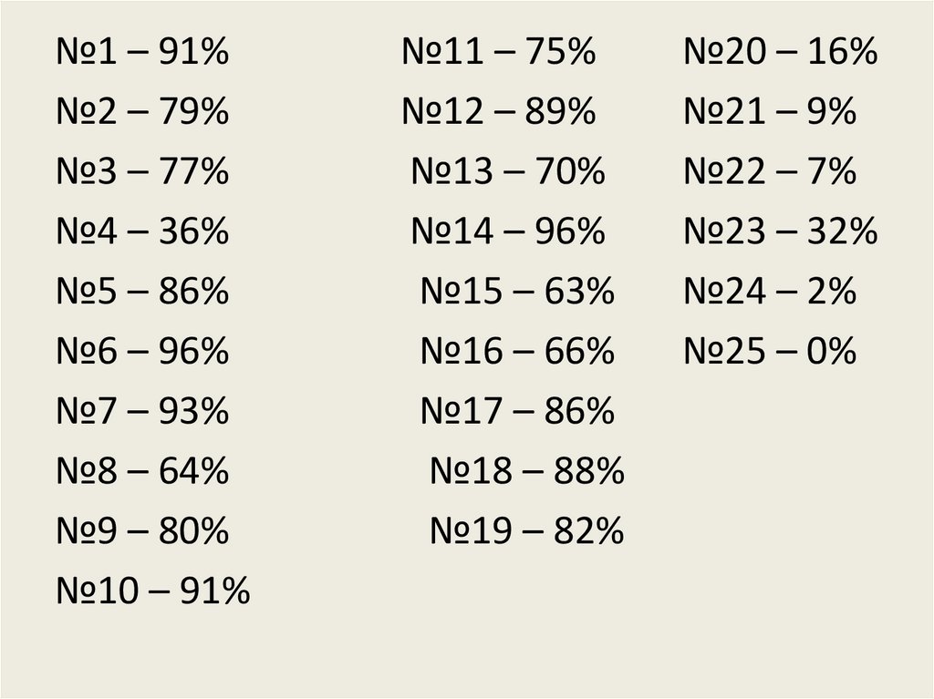 №1 – 91%№2 – 79%