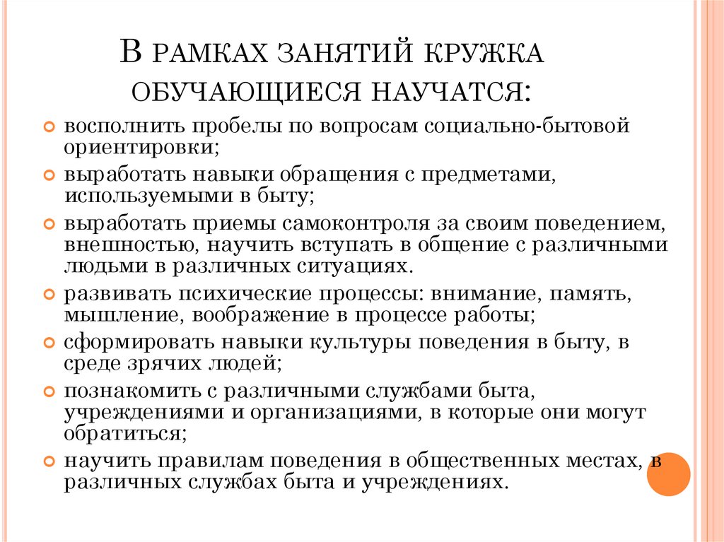 В РАМКАХ ЗАНЯТИЙ КРУЖКАОБУЧАЮЩИЕСЯ НАУЧАТСЯ: