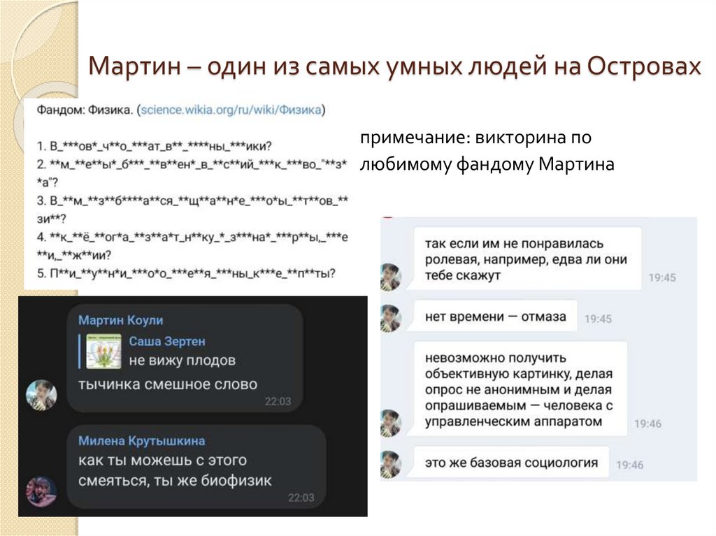 Мартин – один из самых умных людей на Островахпримечание: викторина по