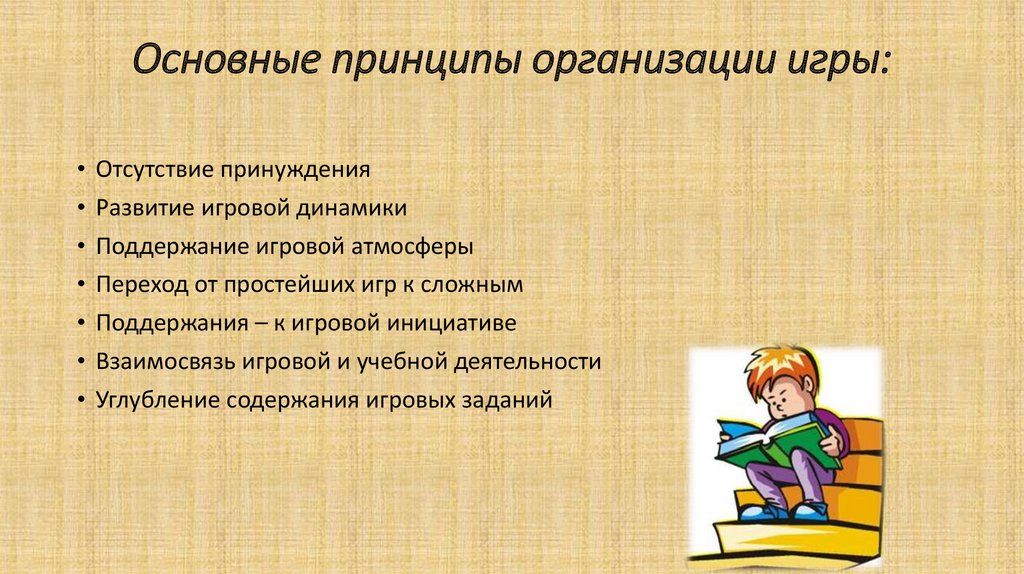 Основные принципы организации игры:• Отсутствие принуждения