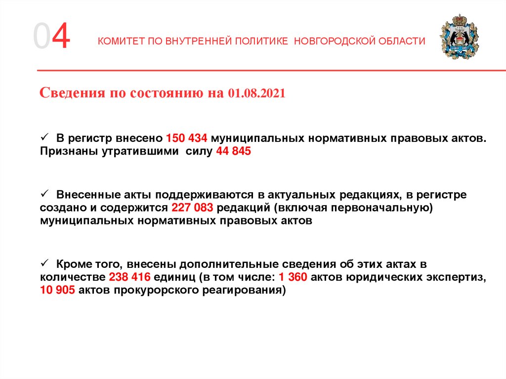 Комитет по внутренней политике Новгородской области. Центр муниципальной правовой информации