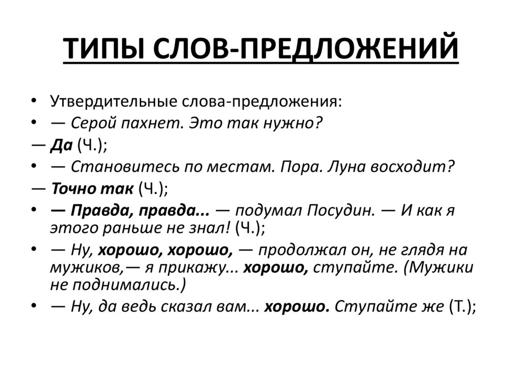 ТИПЫ СЛОВ-ПРЕДЛОЖЕНИЙ• Утвердительные слова-предложения: