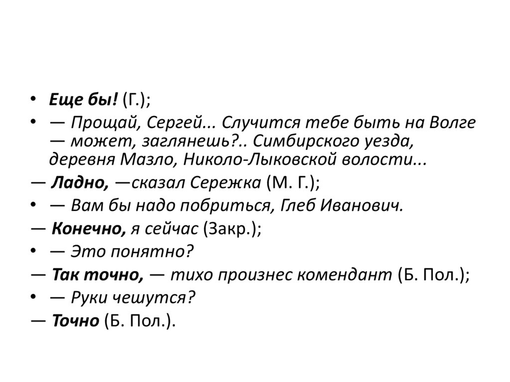 • Еще бы! (Г.);• — Прощай, Сергей... Случится тебе быть на Волге