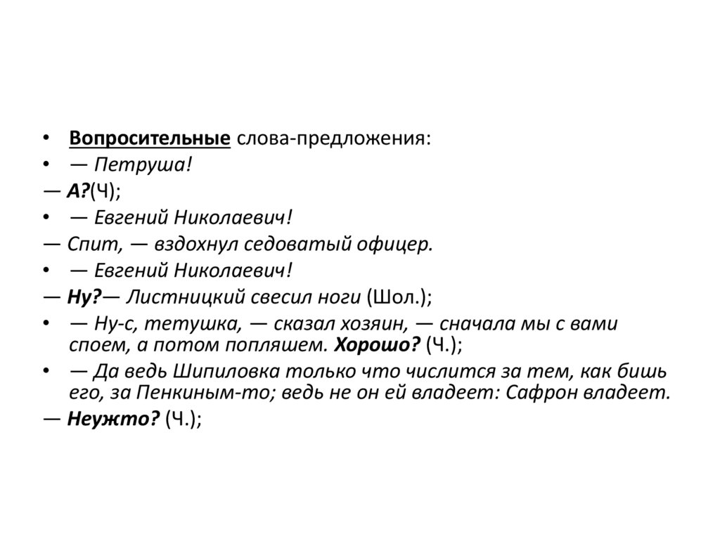 • Вопросительные слова-предложения:• — Петруша!