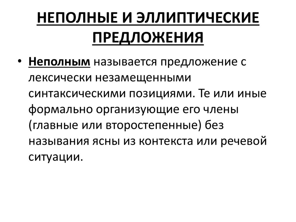 НЕПОЛНЫЕ И ЭЛЛИПТИЧЕСКИЕПРЕДЛОЖЕНИЯ