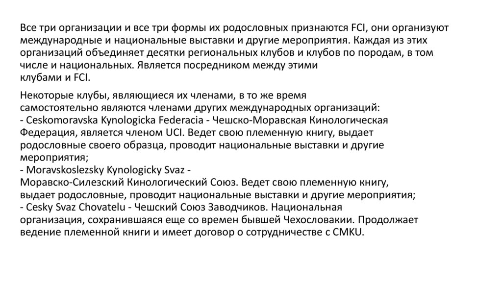 Все эти организации имеют равные права, выдают родословные и другую документацию,