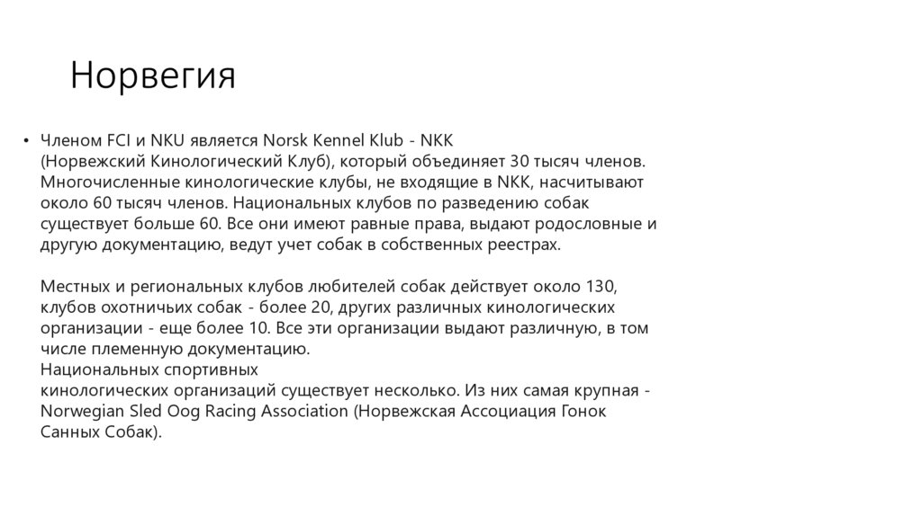 Норвегия• Членом FCI и NKU является Norsk Кеnnеl Кlub - NKK