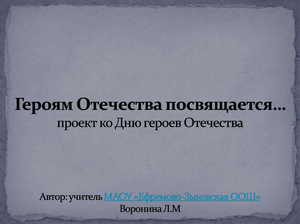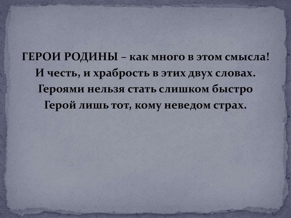 ГЕРОИ РОДИНЫ – как много в этом смысла!И честь, и храбрость в этих двух словах.
