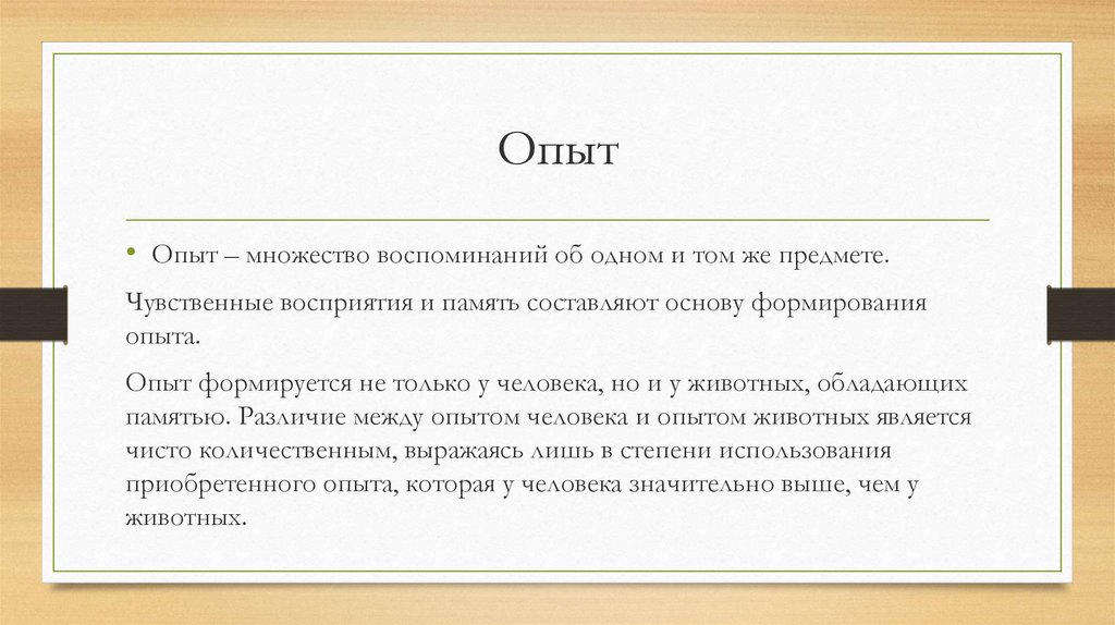 Опыт• Опыт – множество воспоминаний об одном и том же предмете.