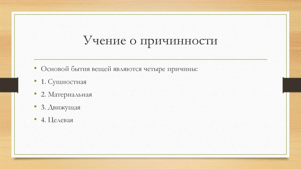 Учение о причинностиОсновой бытия вещей являются четыре причины: